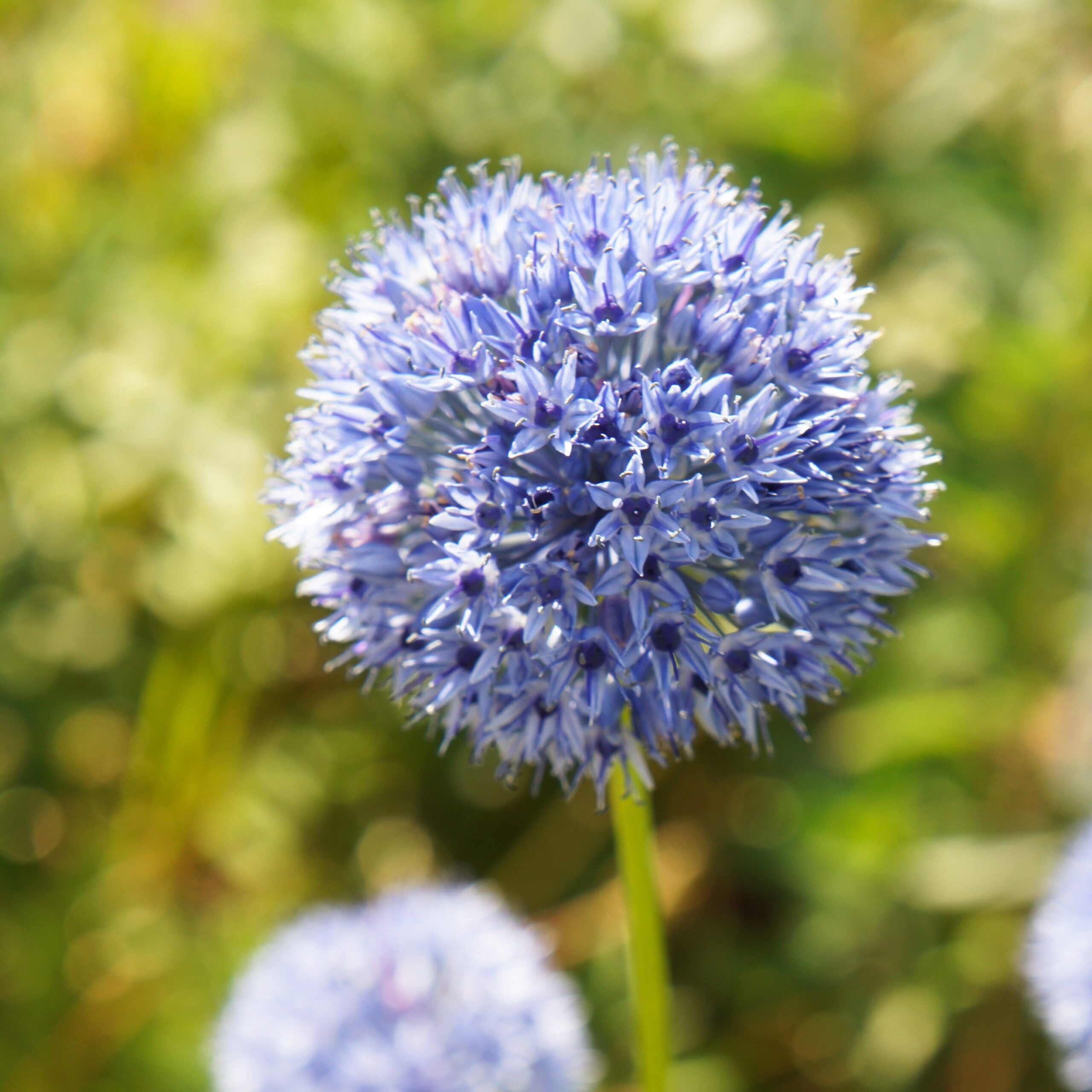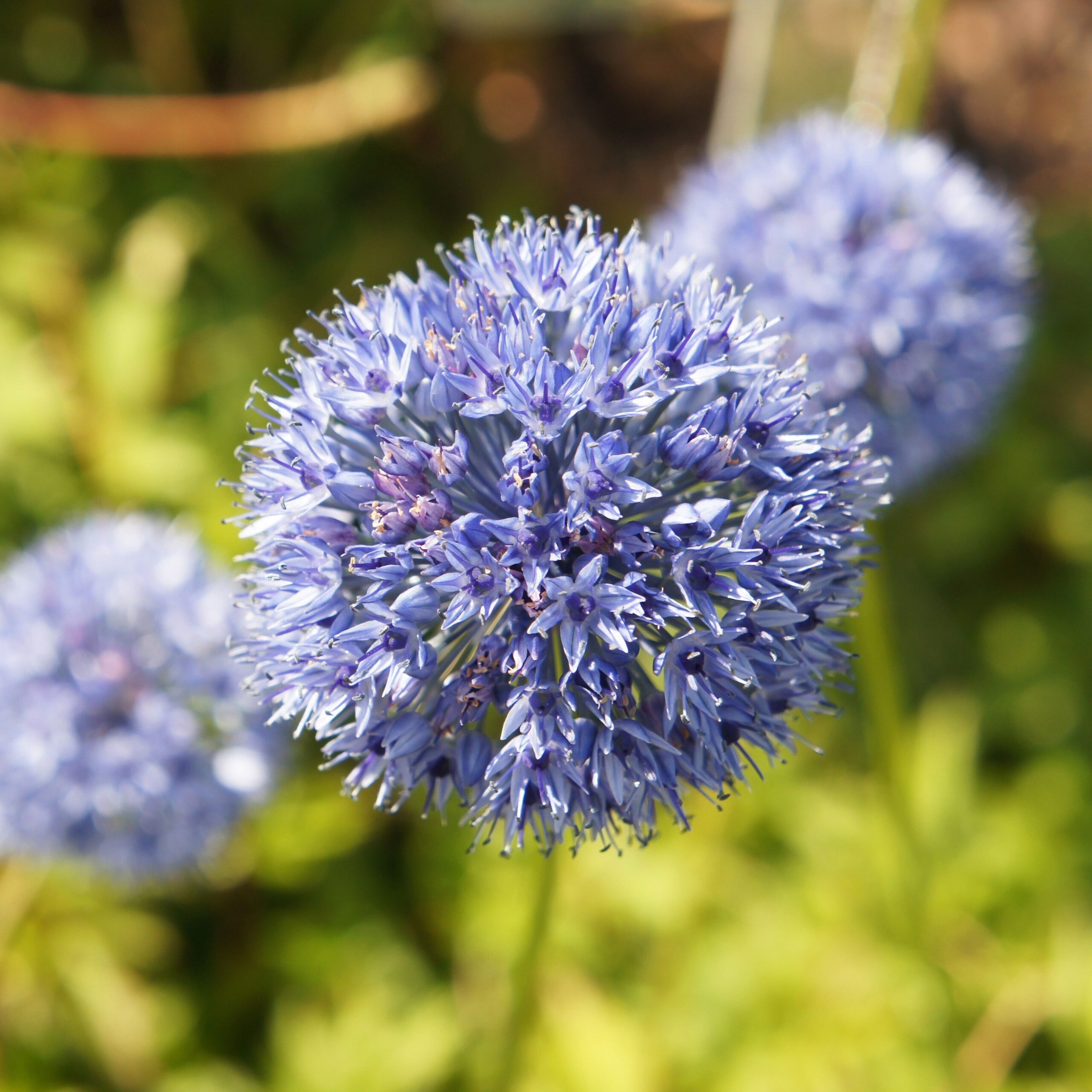 Allium ‘Caeruleum’ (also known as azureum) produces striking, bright blue globes of flowers which are composed of star-shaped florets. Flowering in early summer, this variety brings vibrant colour and texture to garden borders and mixed plantings.