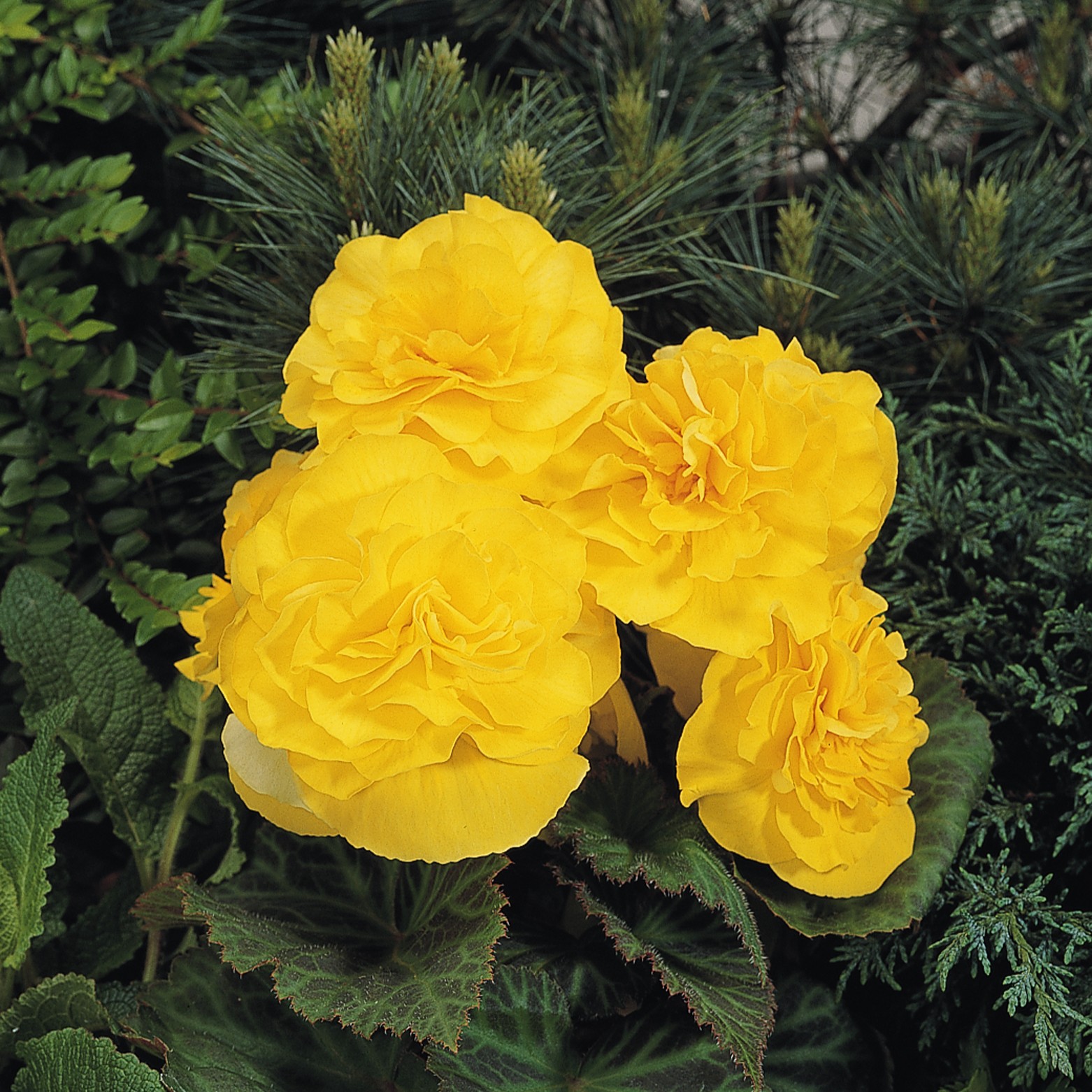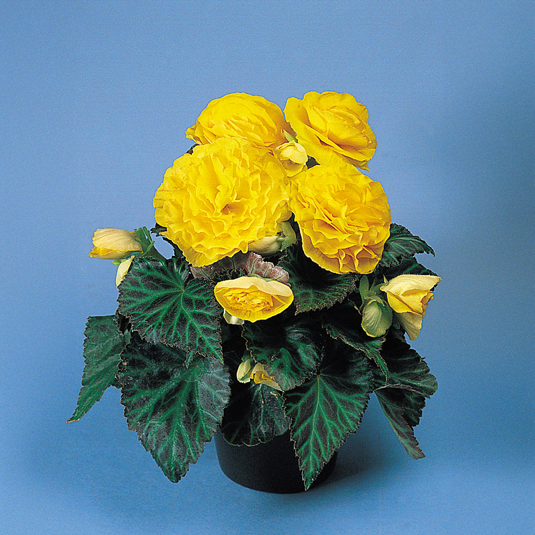 Begonia ‘Non Stop’ (Tuberhybrida) Yellow F1 is a tuberous trailing variety with bright, cheerful yellow flowers. Perfect for borders, containers, or shaded garden spots.