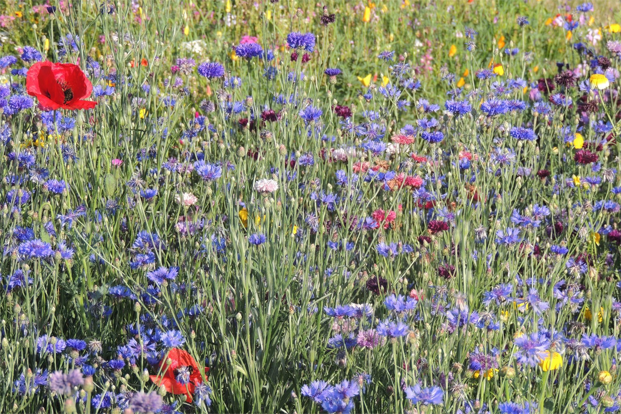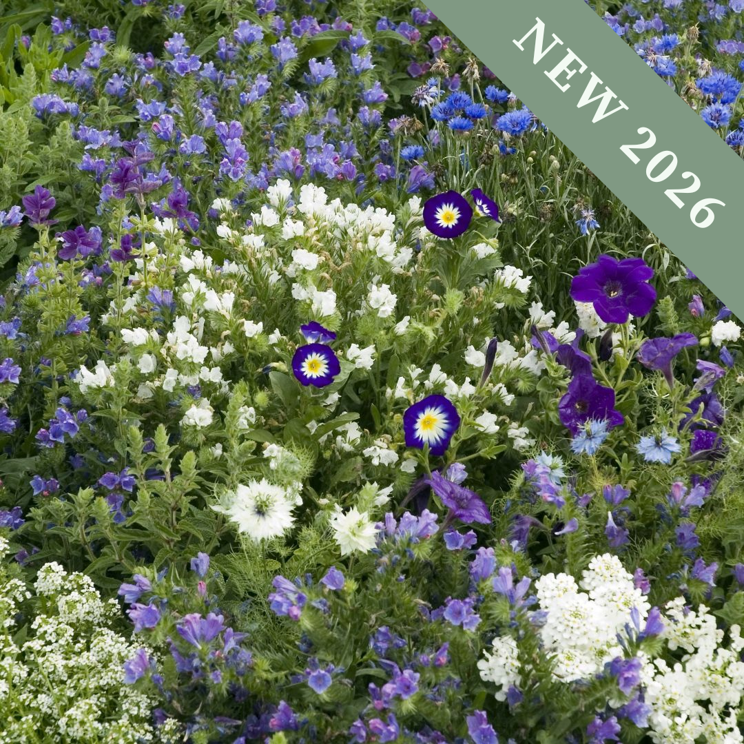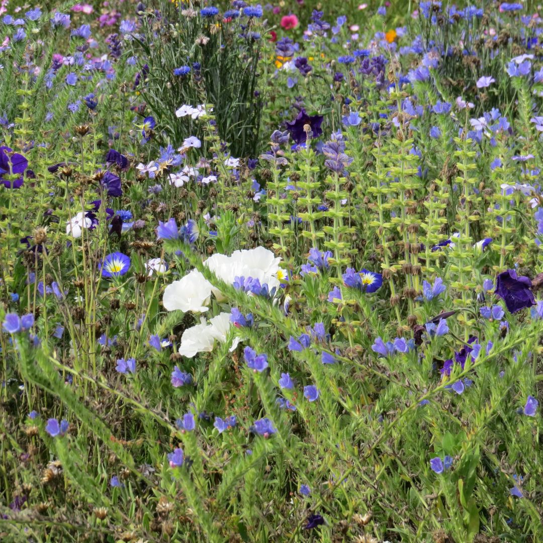 This mix contains: Lobularia maritima, Convolvulus tricolor, Centaurea cyanus, Cynoglossum amabile, Echium plantagineum, Nigella damascene, Nolana paradoxa, Petunia grandiflora, Phacelia campanularia, Callistephus, Salvia horminum, Iberis amara, Viscaria oculata. Â