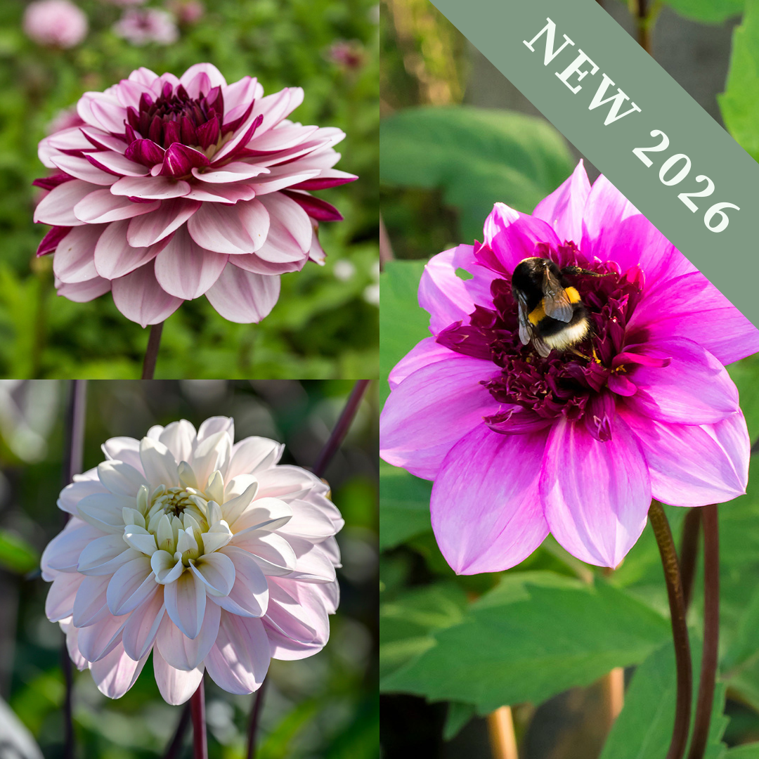 The soft tones of lilac and blackcurrant in all of these dahlias will guarantee beautiful complementary planting combinations in your borders.