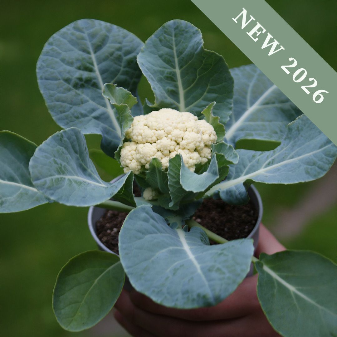 Cauliflower ‘Baby F1’ is a fast-maturing F1 variety bred for its compact size, making it one of the smallest cauliflowers. It is ideal for growing in small pots, gardens, or balconies, with the plants produce small, tender curds along with crisp, edible leaves that are perfect for cooking or stir-frying.