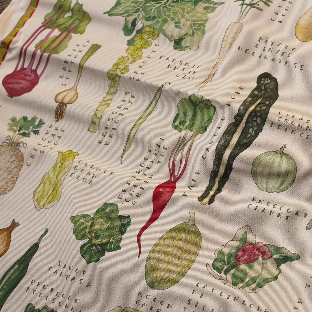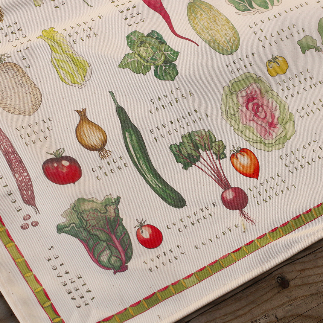 This tea towel was created in collaboration with local artist Emma van Zeller, who has worked with Charles Dowding on illustrations for his courses and books. The drawings feature vegetables grown by Charles in his garden. Both practical and decorative, it can be used as a fully functioning tea towel or displayed as a wall hanging.