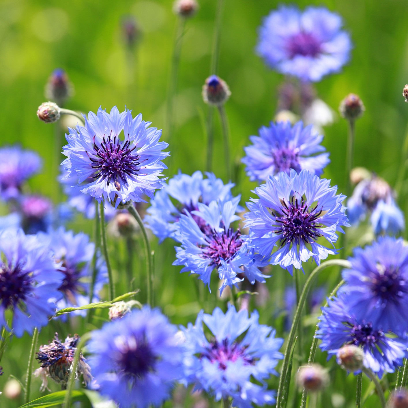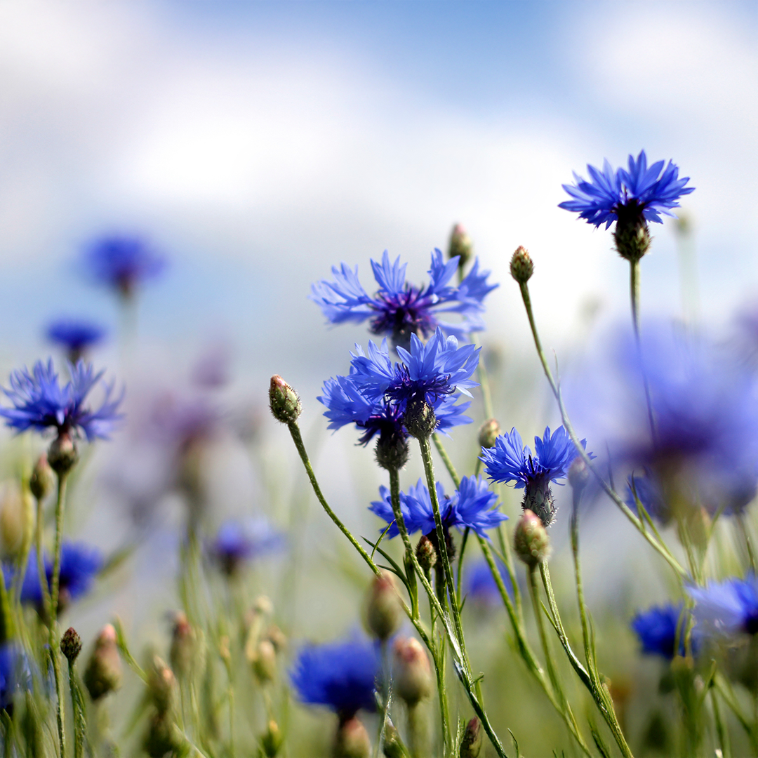 Cornflower (Centaurea cyanus) Blue Ball produces vibrant blue double flowers on slender stems. Ideal for cottage gardens, borders, or cutting, it adds striking summer colour while attracting pollinators.