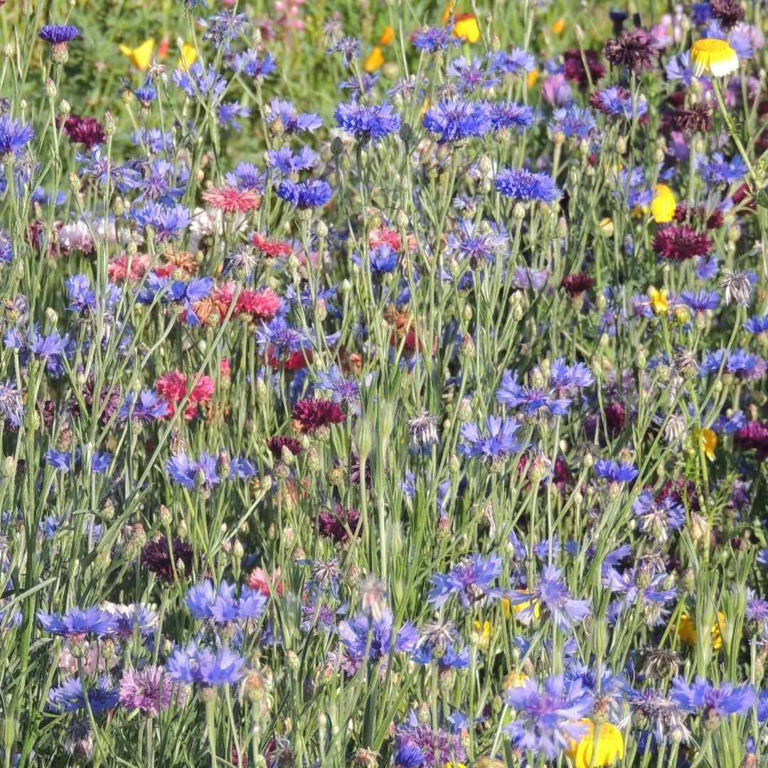 This meadow mix contains: Adonis aestivalis, Centaurea cyanus, Chrysanthemum segetum, Papaver rhoeas, Agrostemma githago, Hesperis matronalis, Leucanthemum vulgare, Linum perenne, Agrostemma githago, Nigella damascene, Delphinium consolida.