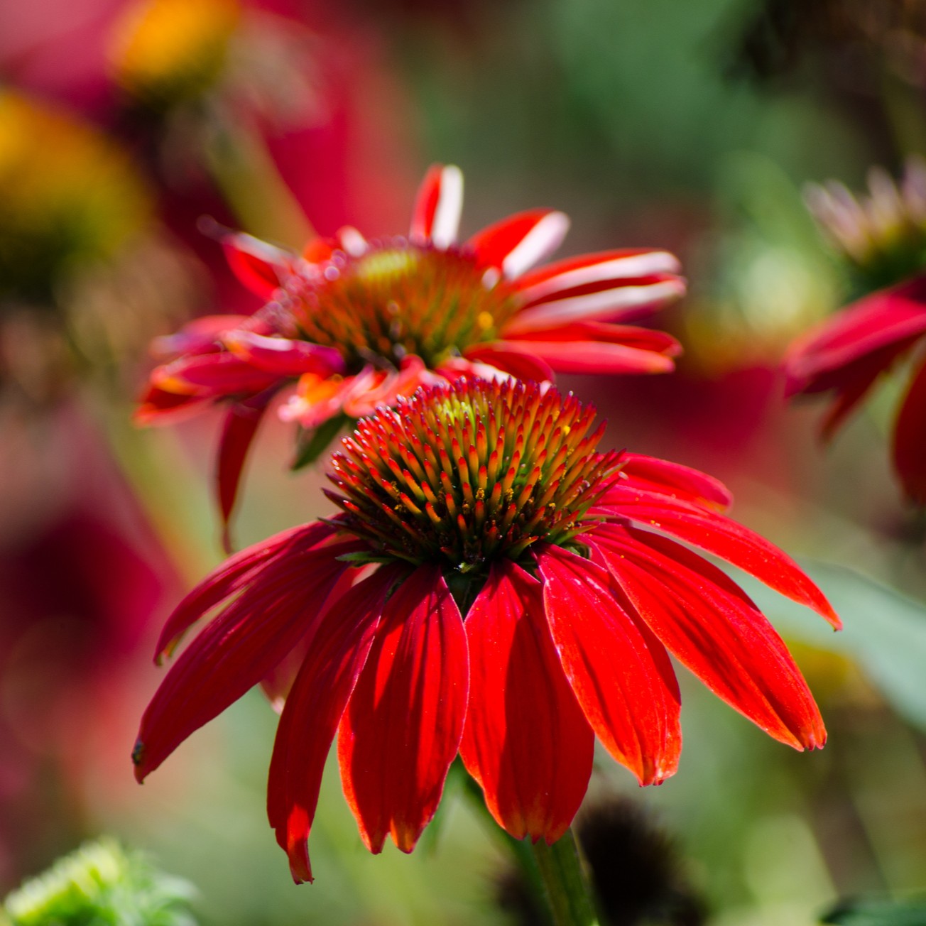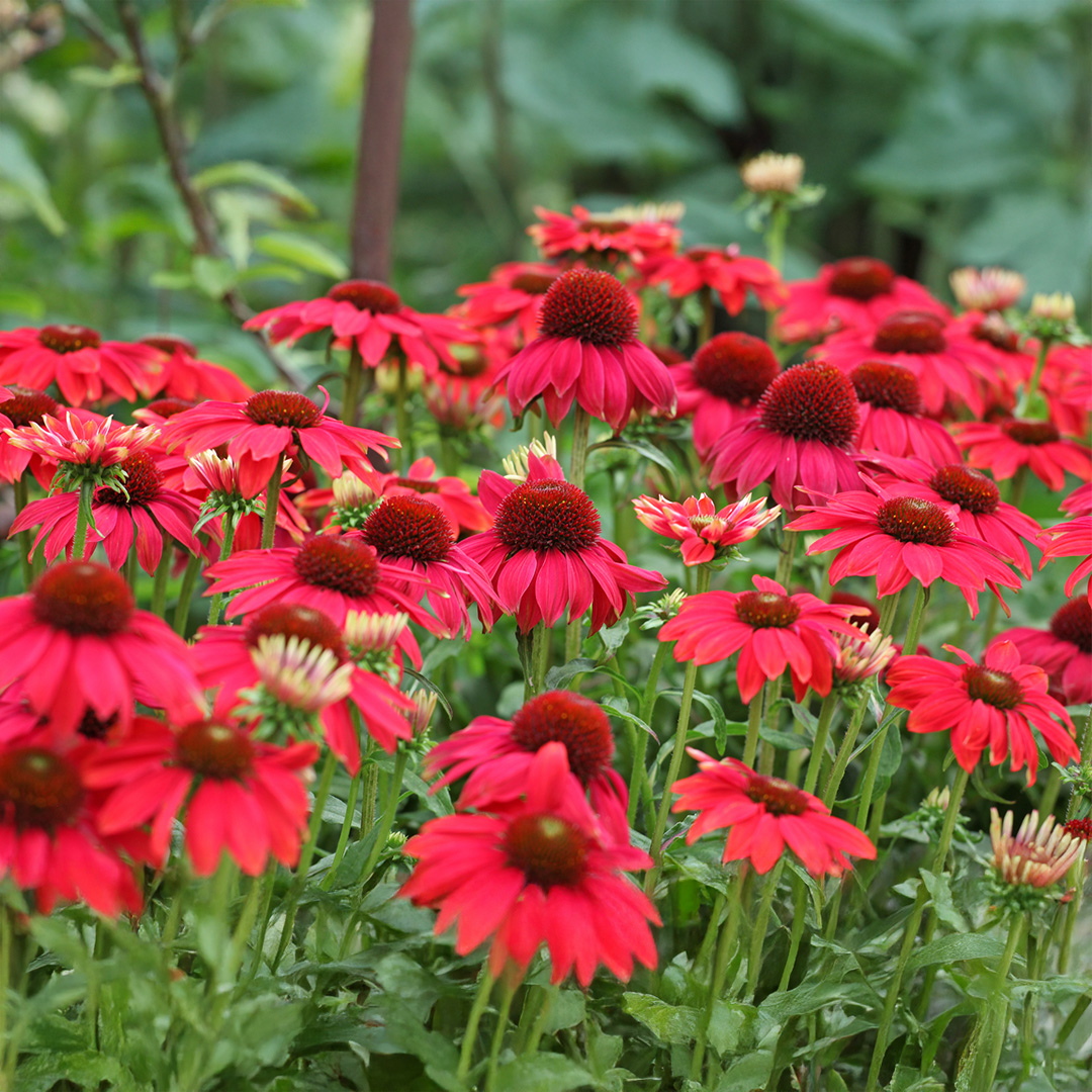 Echinacea (Coneflower) Red in Shades bears bold red daisy-like blooms that attract pollinators. Perfect for sunny borders or naturalised beds, it adds long-lasting summer color.