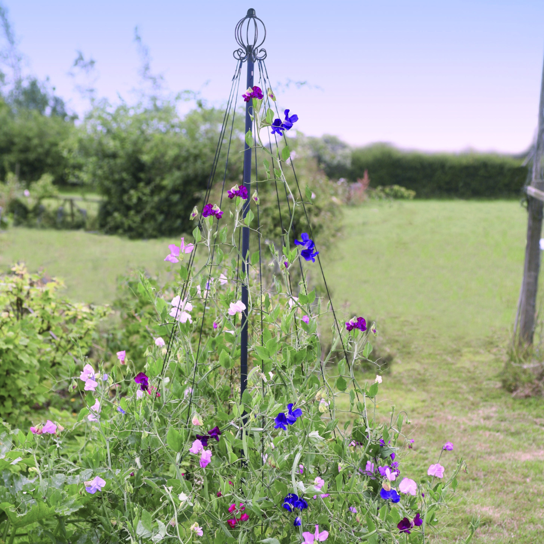 The Garden Maypole is a stylish and sturdy support for climbing plants like sweet peas, clematis, and runner beans. As your plants grow, they naturally pull on the rot-proof polypropylene strings, which tighten and give extra strength, helping even heavier plants stay upright.