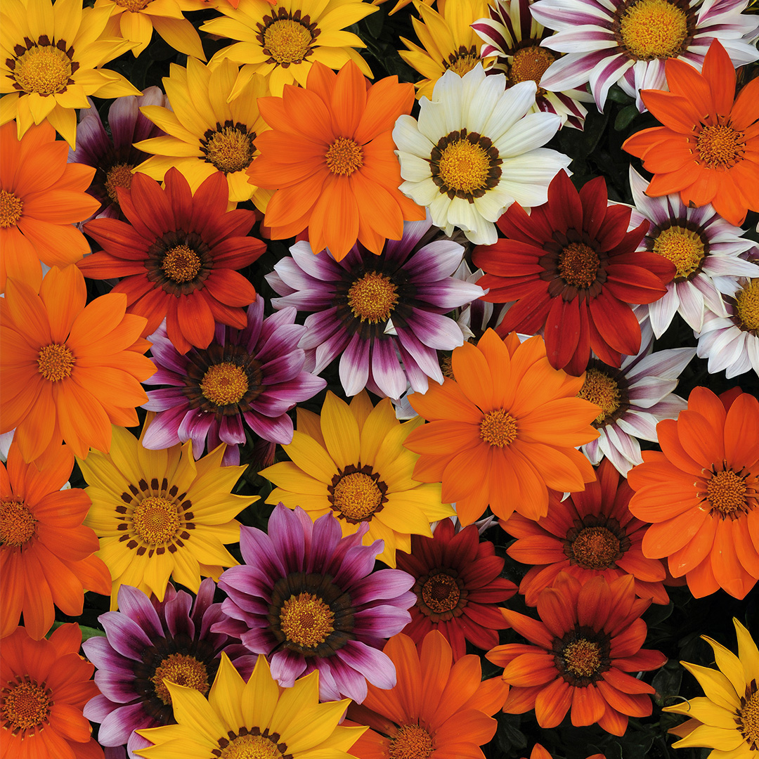 Gazania ‘New Day’ Mix F1 is a compact annual with vibrant daisy-like flowers in shades of yellow, orange, red, and gold. With short stems that withstand windy sites, it’s perfect for borders or containers and blooms freely through summer.