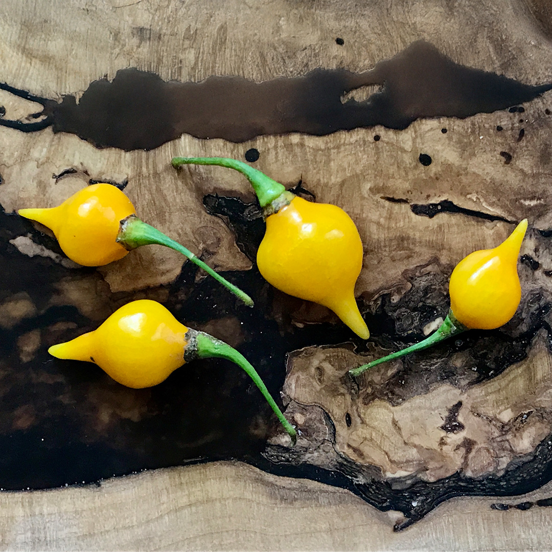 The name Biquinho means “little beak” in Portuguese and is native to Central America. The yellow type is slightly sweeter than the red.