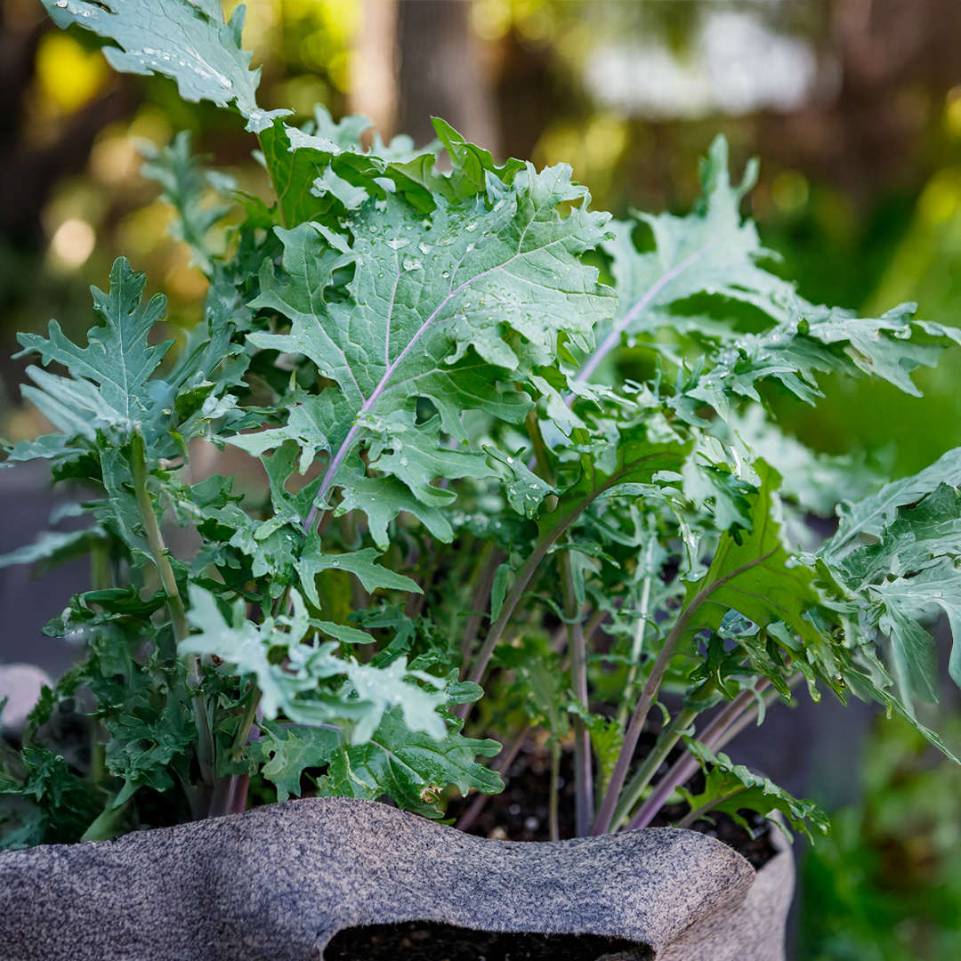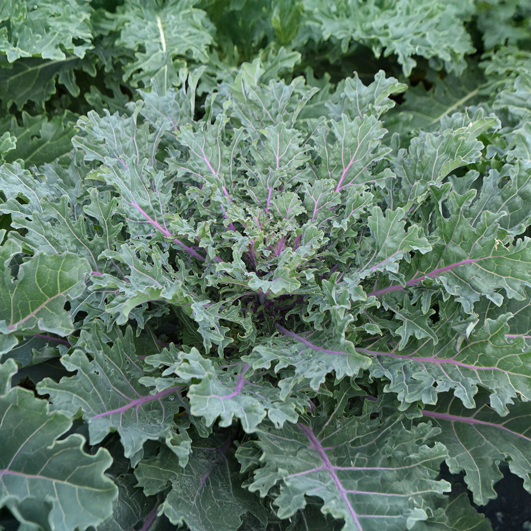 A vigorous and attractive Heirloom variety that colours up well even before cold weather, but especially after cool weather. The grey green leaves are oak-leaf shaped and deeply cut and intersected by purple-pink veins. Excellent for salad greens when leaves are thumb size and tender; larger leaves make delicious and nutritious cooked greens as per other kale varieties. Height up to 2 ft.