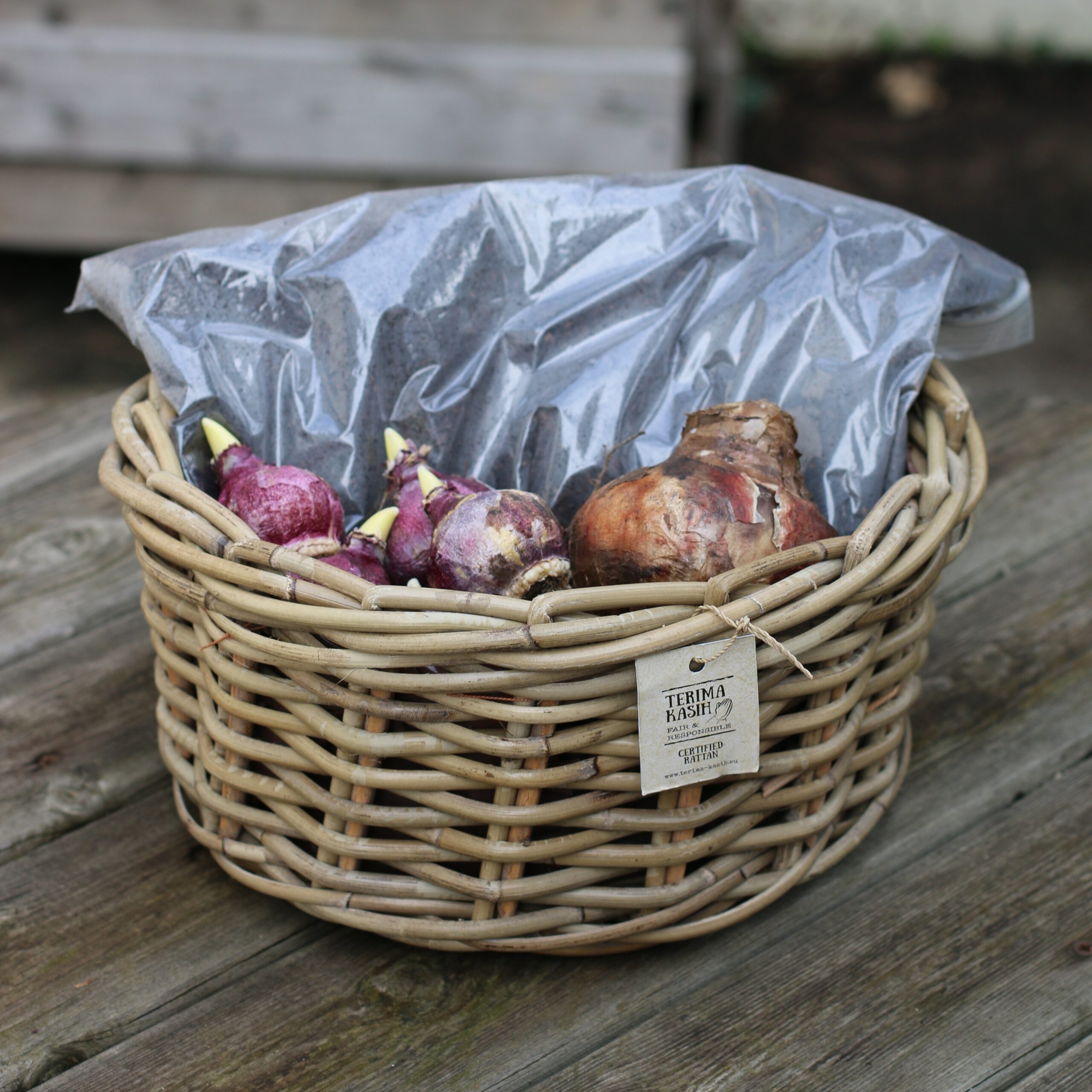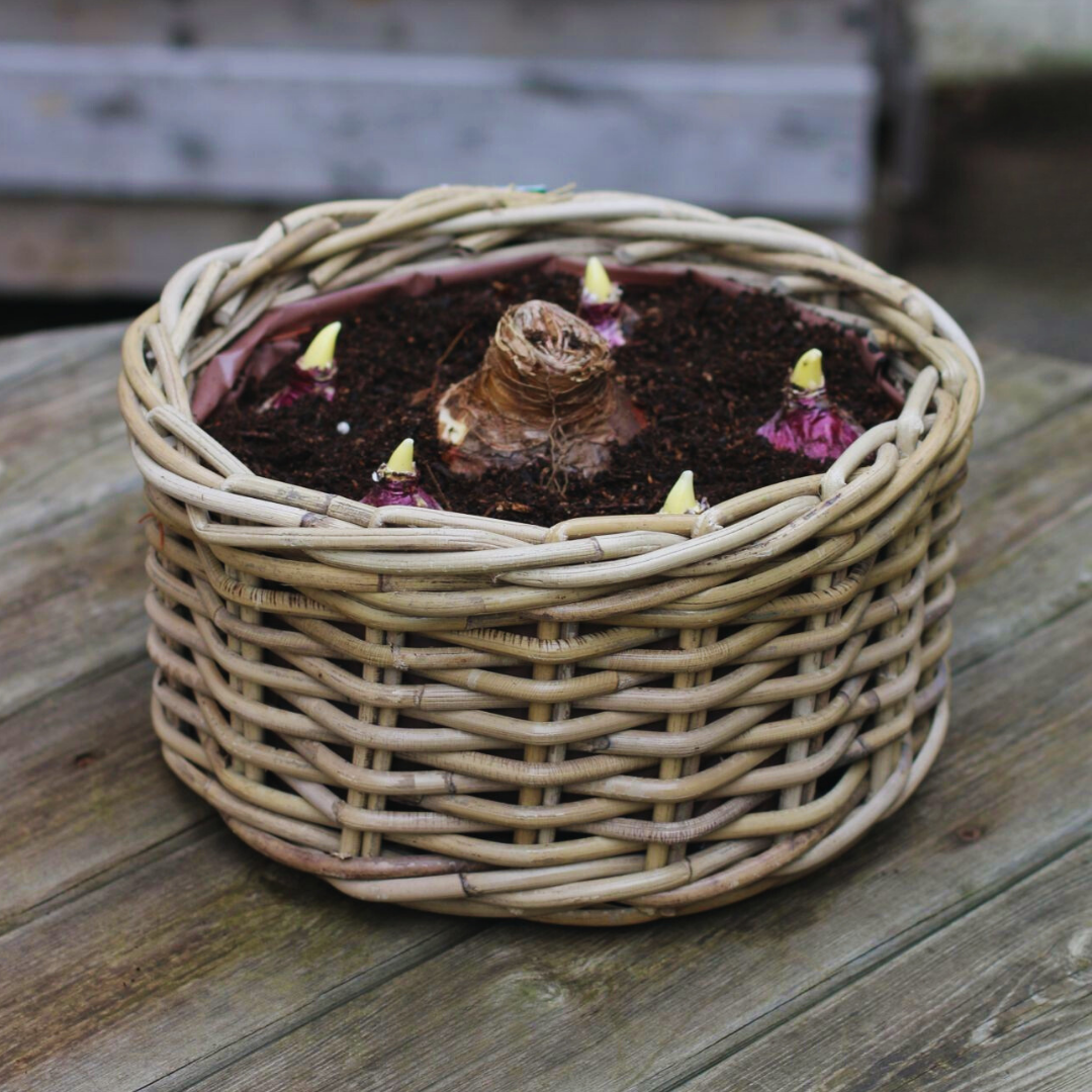 Plant the Amaryllis bulb in the centre of the basket and surround it with the Hyacinth bulbs for a stunning layered display. The Amaryllis will produce a tall and dramatic blooms, while the Hyacinths fill the base with clusters of richly scented white flowers. Together, they create a striking combination of height, colour, and fragrance.