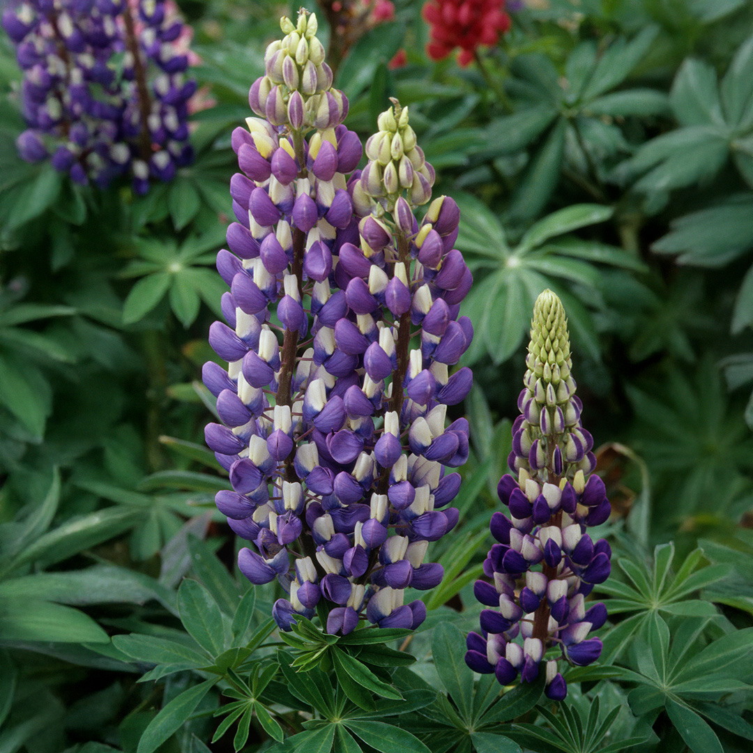 Lupin (Russell) ‘The Governor’ is a perennial with tall spikes of rich purple flowers with a white flag. Perfect for sunny borders and cottage gardens, it’s also excellent for cutting.