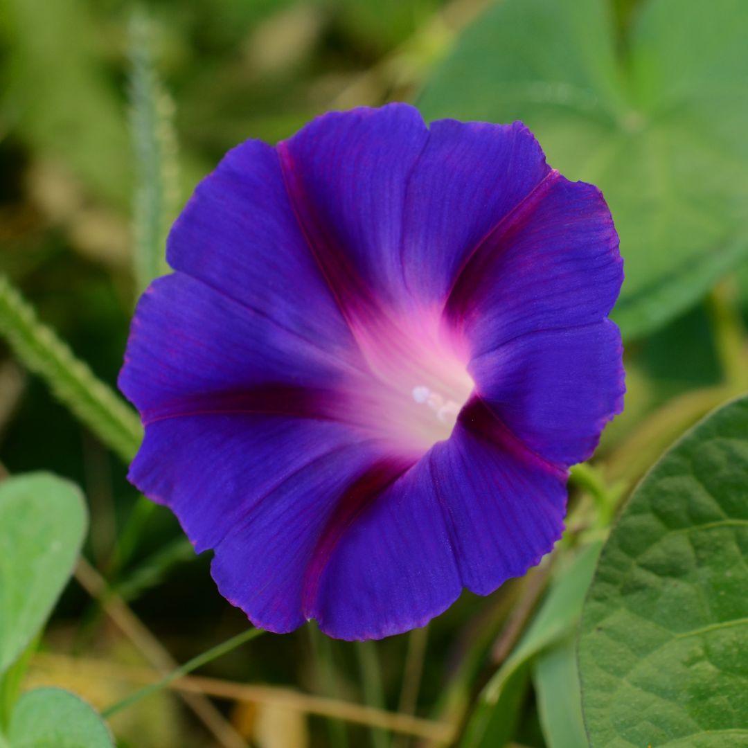 Morning Glory (Ipomoea purpurea) ‘Black Knight’ is a climbing annual with deep, dark purple, trumpet-shaped flowers. Ideal for trellises, fences, and arches, it blooms freely through summer.