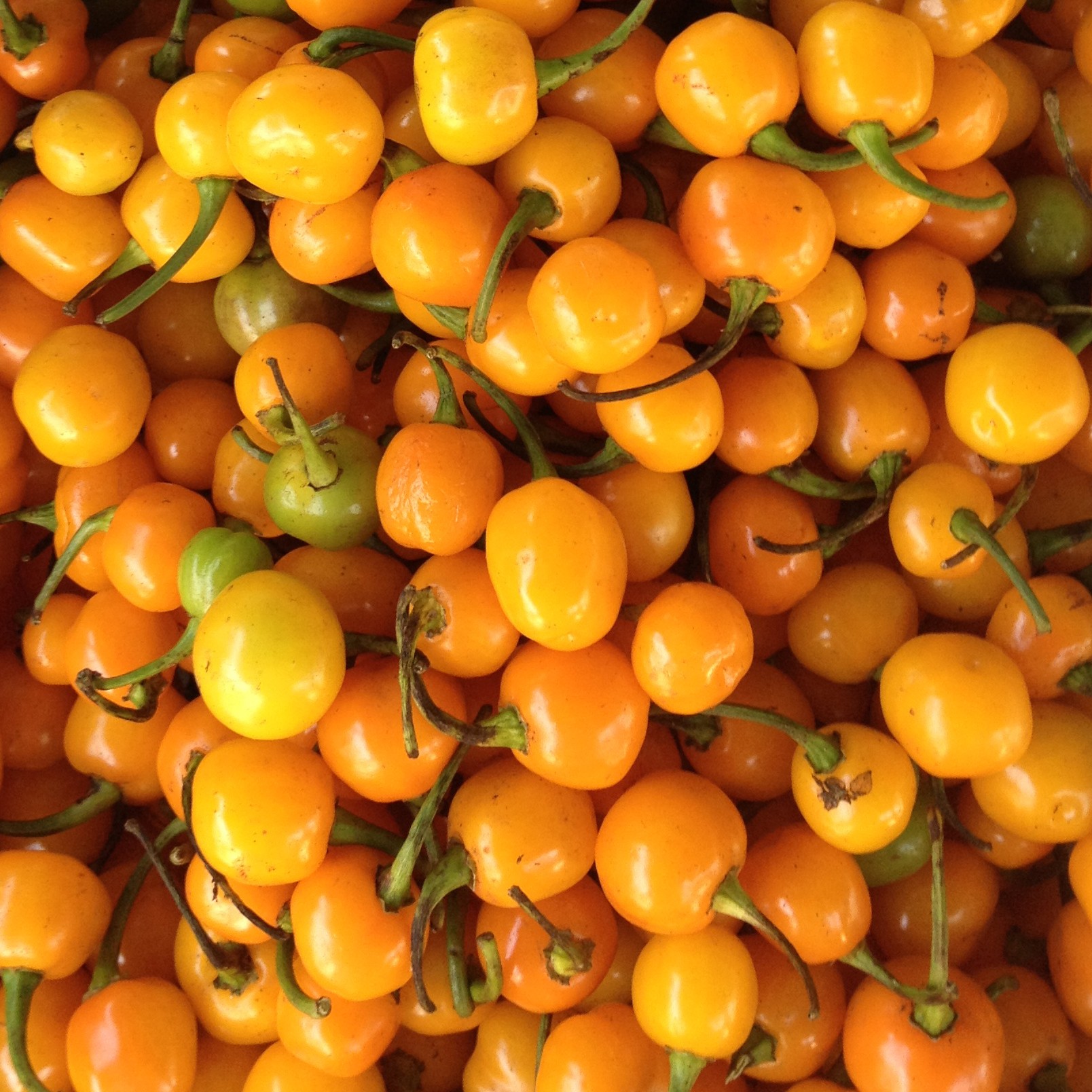 An early maturing and productive hot cherry variety, Orange Koral ripens  from dark green to an orange-yellow at maturity with a heat of 40,000 Scoville’s.  The fruits average 2cm in diameter  and 15-20 grams. Best under glass in the UK or a very sheltered spot outdoors in full sun.