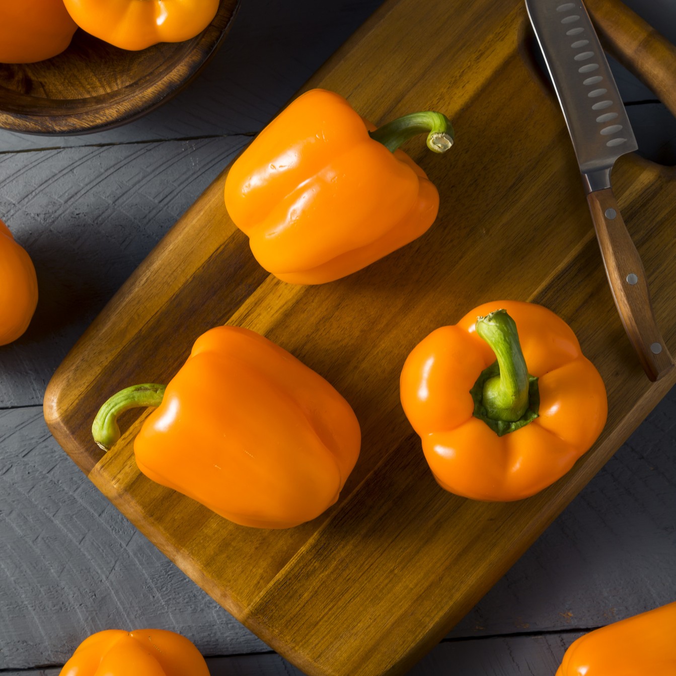 Pepper ‘Kuman’ is a vibrant orange sweet bell pepper producing crisp fruits. This variety offers excellent flavour and is perfect for fresh eating, salads, roasting, or stuffing.