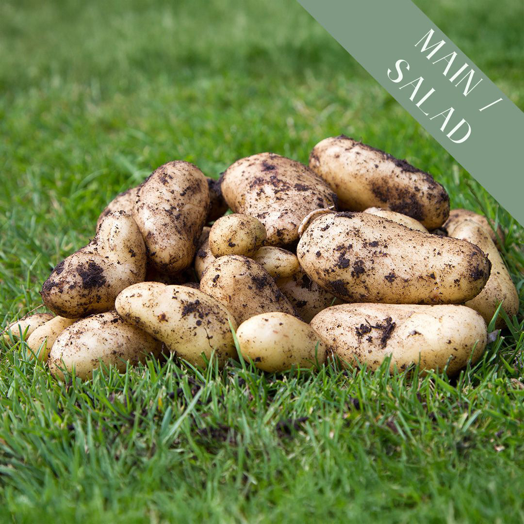 Potato ‘Belle de Fontenay’ is a traditional French heritage salad variety, valued for its fine flavour and waxy texture. It produces long-oval tubers with smooth yellow skins and pale yellow flesh that holds its shape when cooked. A reliable early maincrop, ‘Belle de Fontenay’ offers consistent yields and excellent cooking qualities. Ideal for salads or steaming, it offers a rich, buttery taste and stores well for later use.