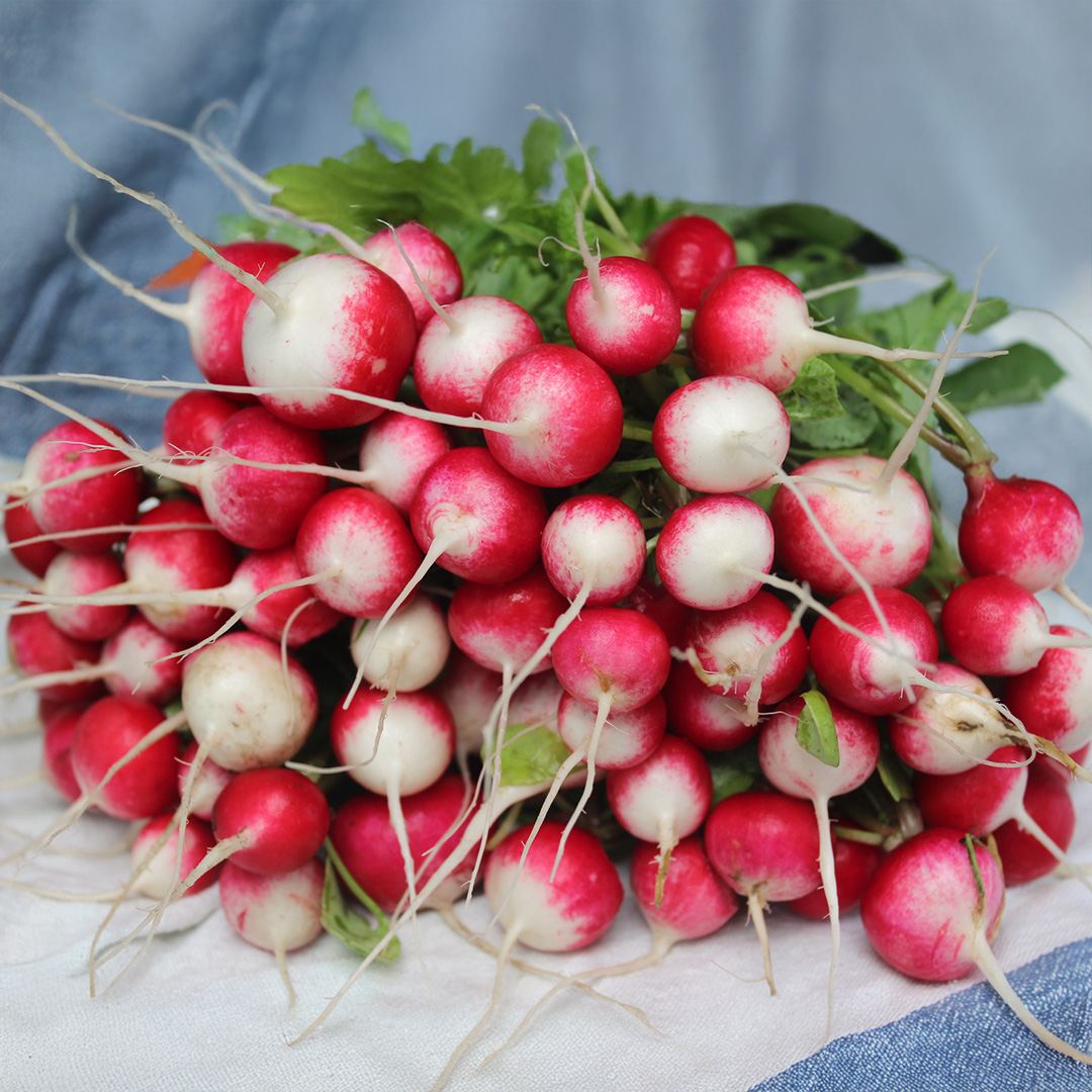 A tasty and attractive globe variety of radish producing crisp roots of excellent flavour which are deep red with a white tip. Fast to mature and keeps well after harvest.  Sow every 2-3 weeks for a continuous supply throughout the summer.