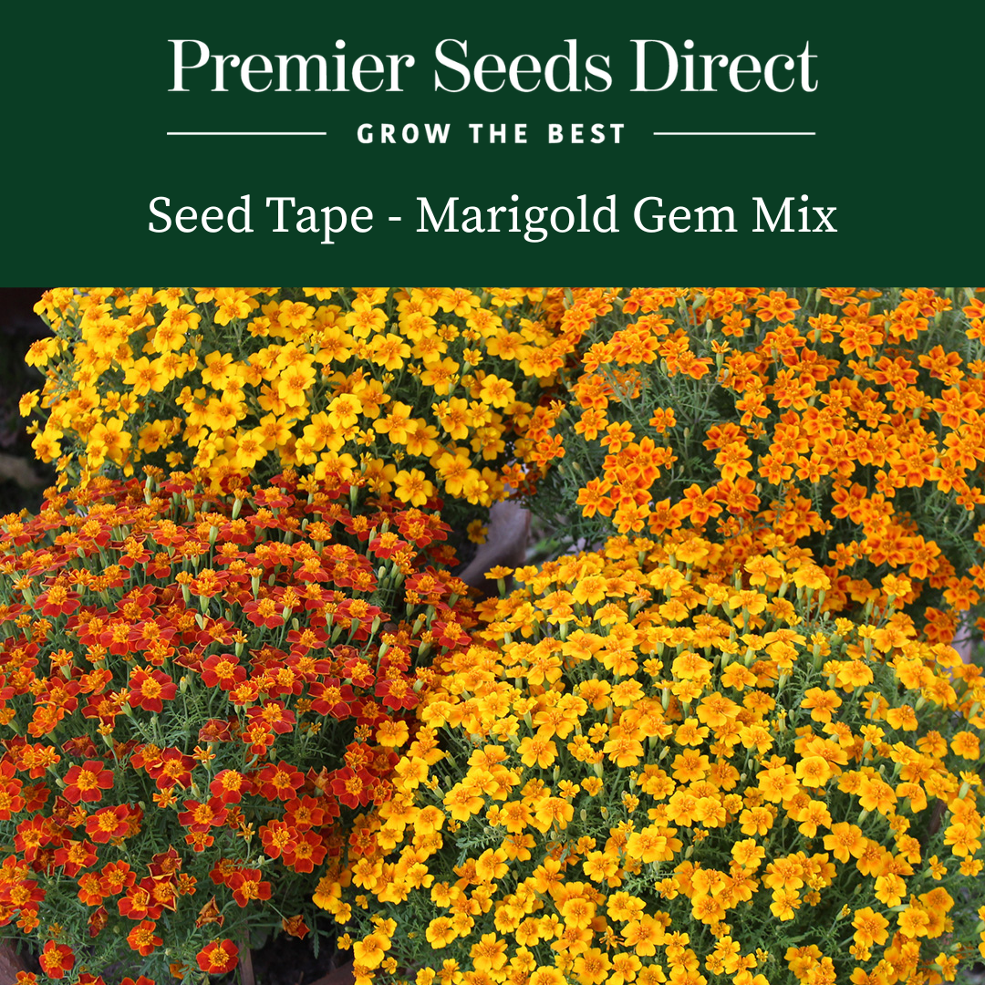 Marigold ‘Gem Mix’ is a vibrant mix of red, orange, and yellow tagetes producing compact, cheerful blooms with a lacy foliage. Each plant has hundreds of petite flowers, which are edible with a subtle citrus flavour.