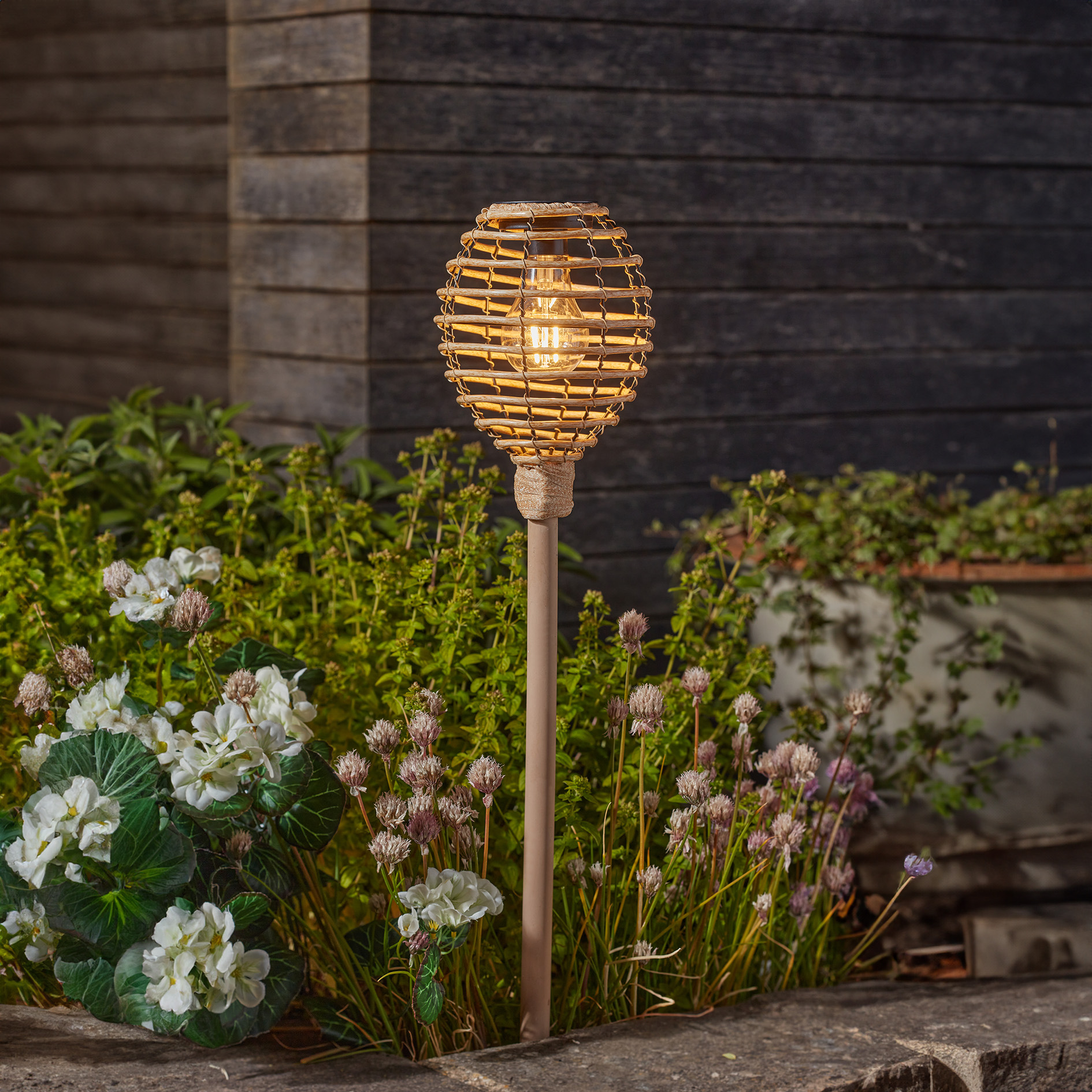 Add a soft, decorative glow to your garden with these Faux Rattan Solar Stake Lights. Designed with a woven rattan-style finish and a warm LED filament effect, they bring both style and subtle lighting to borders, flower beds, and pathways.