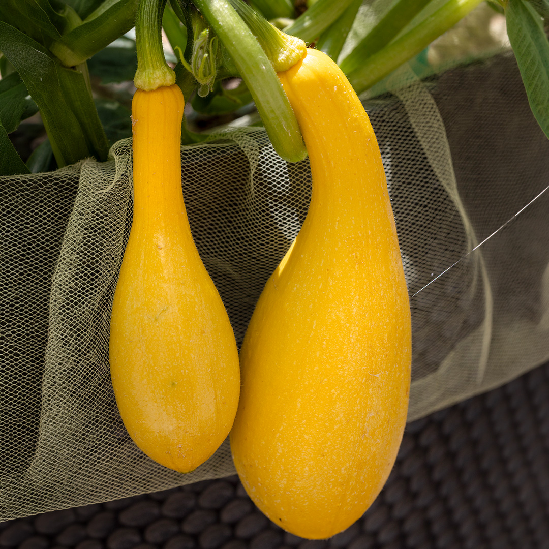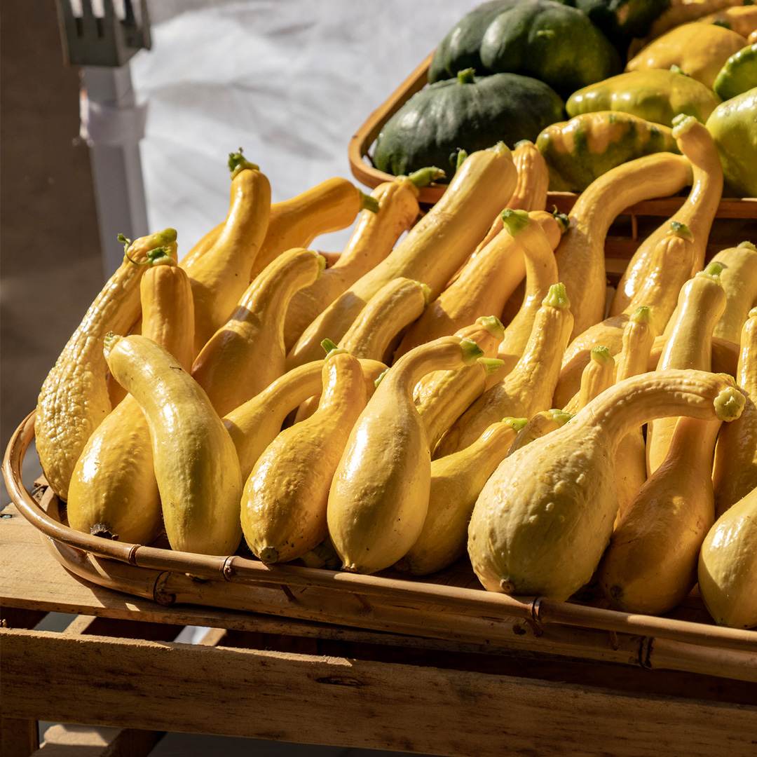 One of the most delectable Summer Squashes, this creamy crookneck is mild, sweet, and full of flavour. Can be used steamed, raw, boiled, baked or tried in great variety of recipes.