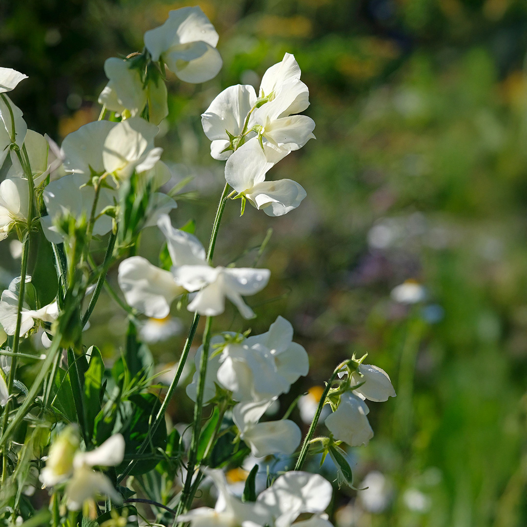Sweet Pea ‘Royal Family White’ produces long-stemmed, pure white, highly fragrant blooms. Flowering over an extended season, it is perfect for adding lasting colour and scent to trellises, fences, or for creating elegant cut flower displays.