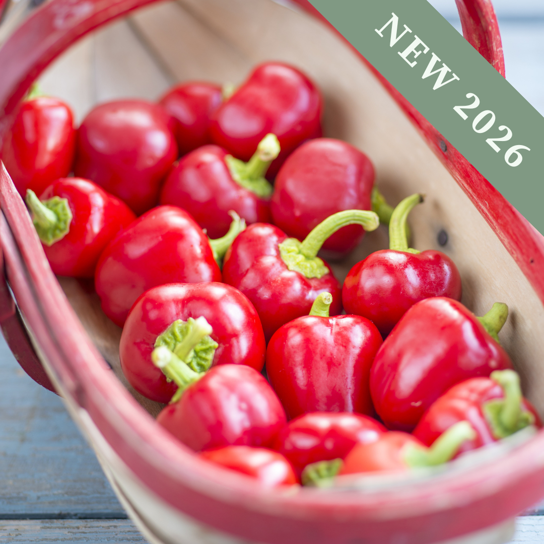 Pepper Sweet ‘Sweetonia Red’ produces glossy, vibrant red fruit with a mild flavour. The crisp peppers are 30-40gm each and are ideal for eating fresh or stir-frying.