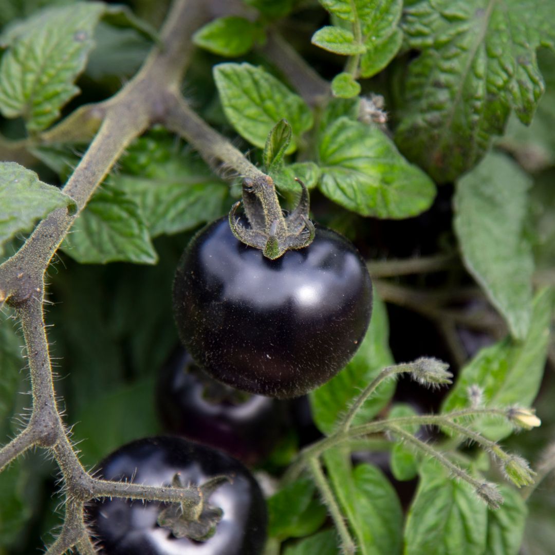 Tomato ‘Akoya F1’ is a high-yielding variety which produces striking fruits with a unique colour progression, ripening from green to black and finally to orange. The cocktail-sized fruits weigh 20-30gm each and are known for their rich flavour. The plant features purple-green foliage and show good tolerance to late blight.