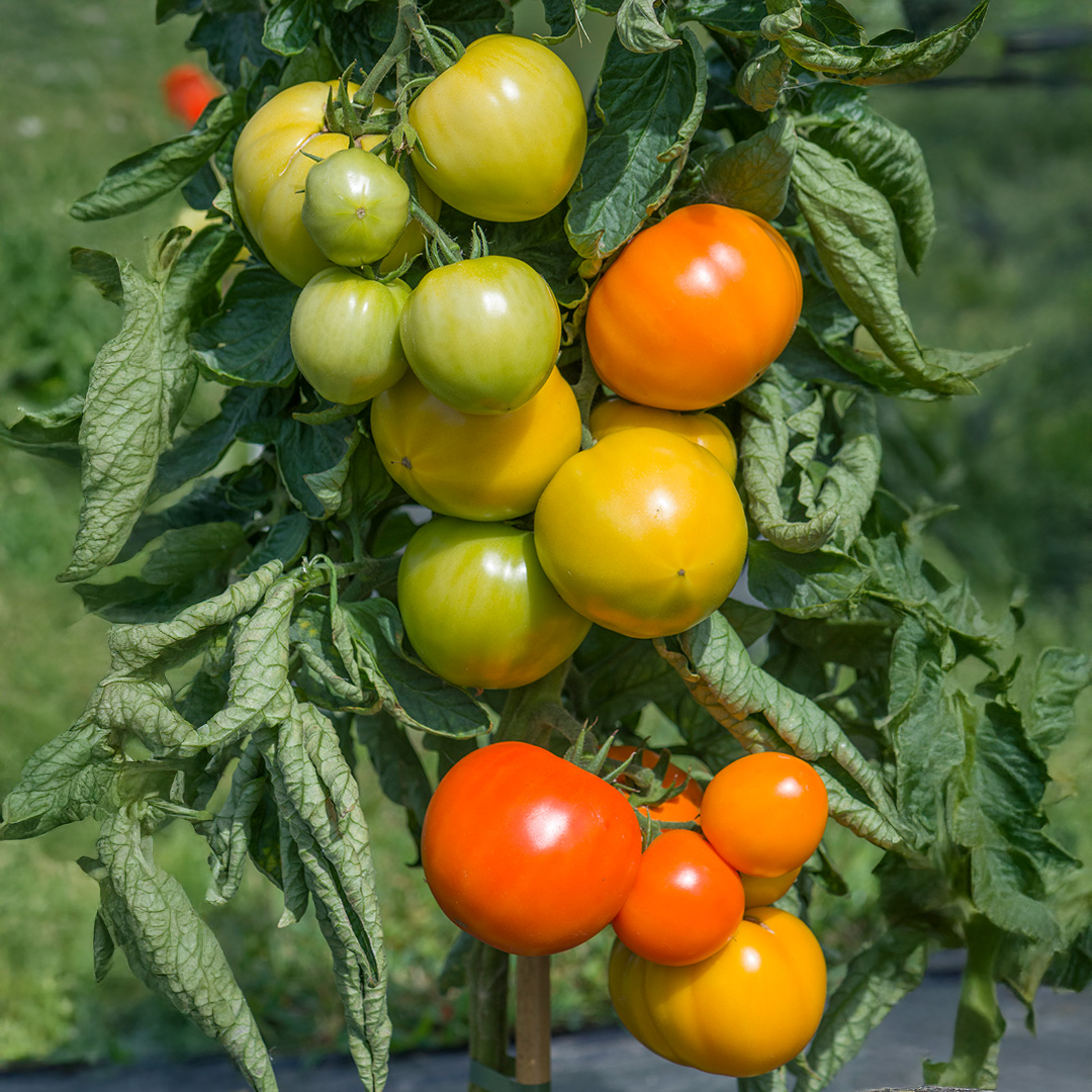 Tomato ‘Lemonita F1’ is a vibrant beefsteak variety producing bright yellow fruits with meaty flesh. Each truss bears 3-5 tomatoes that offer a perfect balance of sweetness and acidity, making them ideal for salads, roasting, or eating fresh.