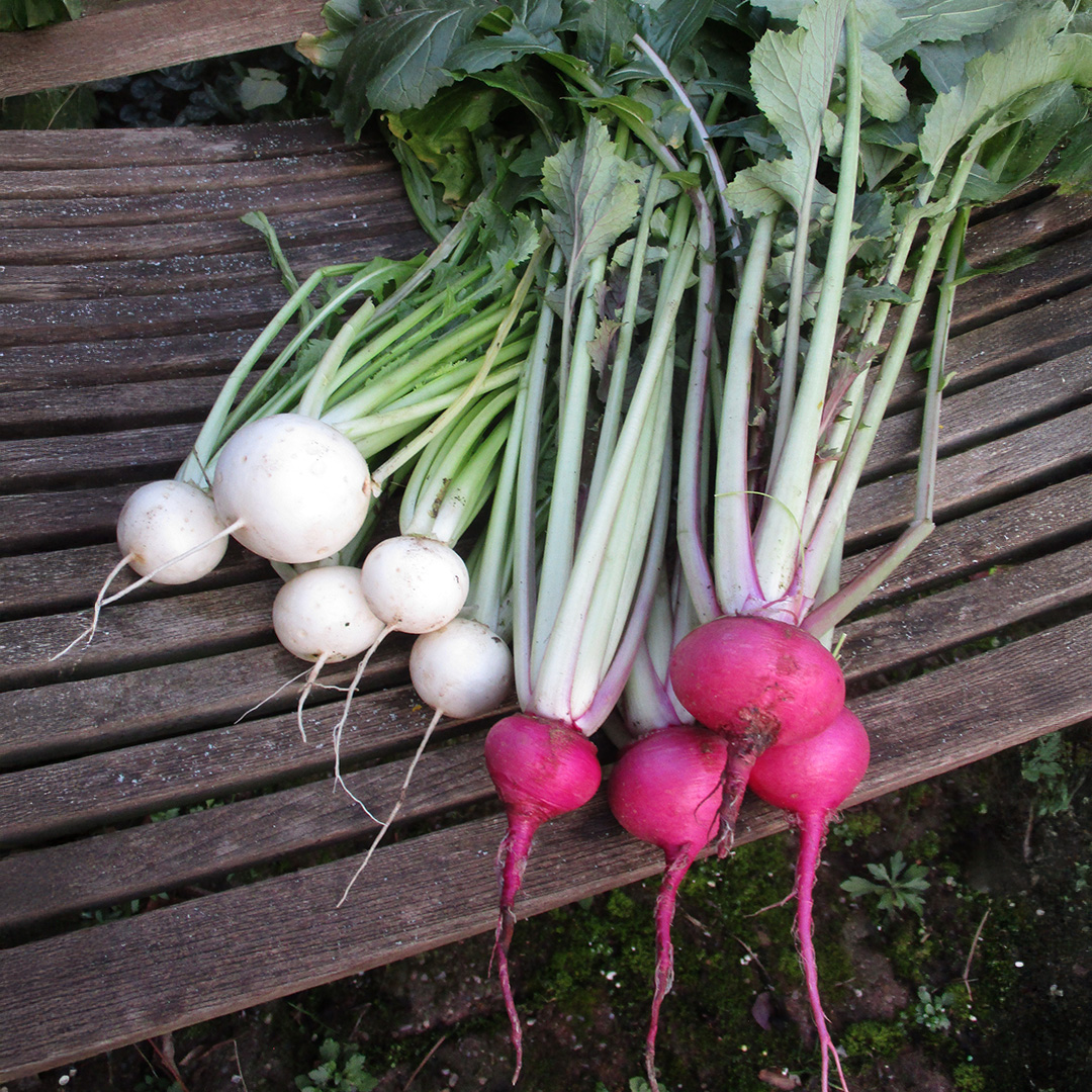 Turnip ‘Temari Mix’ is a vibrant blend of ‘Temari Red’ and ‘Temari White’. It produces smooth, round roots with a crisp texture and a mild, sweet flavour that’s perfect for salads and fresh eating. Quick to mature and easy to grow, this reliable mix performs well in containers or beds.